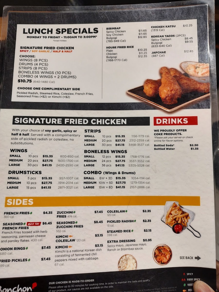 For those looking for healthy extras, the Extras menu features items like Turkey Meatballs, Steamed Broccoli, and Sweet Potato Fries, perfect for adding a bit more nutrition to your meal. The Lighter Side section offers lighter meal options like the Mona Lisa Wrap, Penne Romano, and the Tucson Champion Pasta.